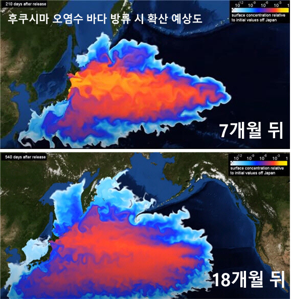 | ▲후쿠시마 오염수 바다 방류시 확산 예상도 (화면 캡쳐=에너지전환포럼) |