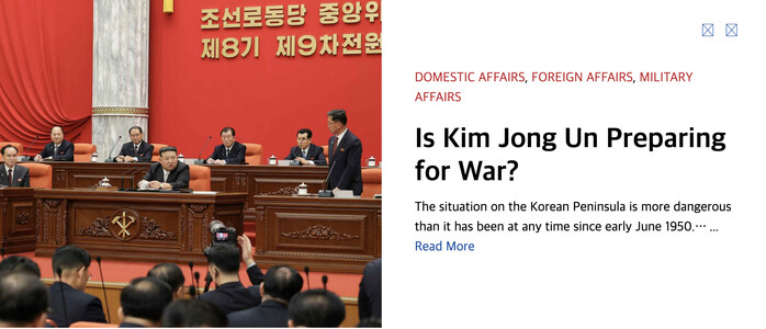 북한 문제 권위자들인 로버트 칼린 미들베리 국제문제연구소 연구원과 시그프리드 헤커 박사는 11일 북한 전문 매체 ‘38 노스’ 공동 기고에서 “한반도 상황은 1950년 6월 초 이래 어느 때보다 위험하다”며 한국전쟁 직전 상황과 현재를 빗댔다.