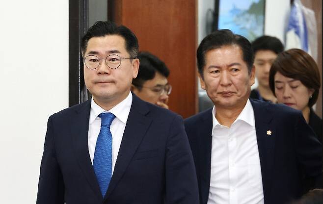 ▲더불어민주당 박찬대 당 대표 직무대행 겸 원내대표와 정청래 최고위원  (사진 = 연합뉴스)