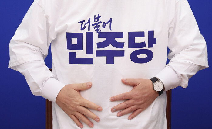 민주당은 이날 국회 본청에서 이재명 대표와 홍익표 원내대표 등 지도부가 참석한 가운데 새 PI 선포식을 열었다.
