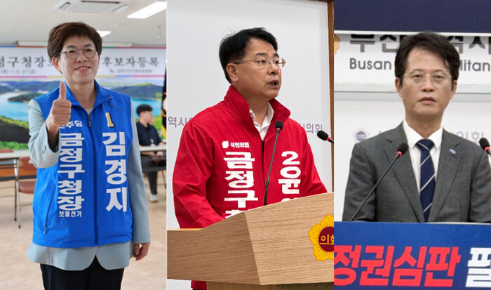 ▲부산 금정구청장 후보 출마한 민주 김경지, 국힘 윤일현, 혁신 류제성 (사진=연합뉴스)
