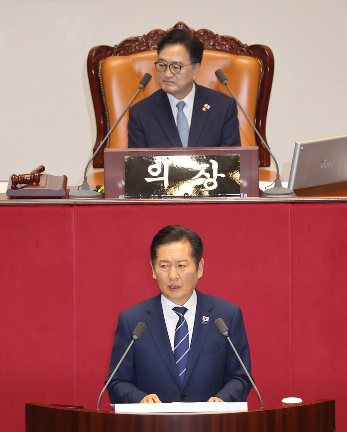 | ▲ 더불어민주당 정청래 대표가 9일 서울 여의도 국회에서 열린 본회의에서 교섭단체 대표연설을 하고 있다. 2025.9.9 (사진=연합뉴스) |