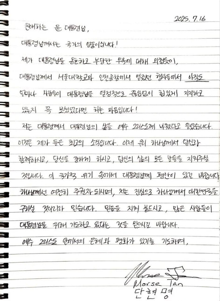 - 트럼프 행정부 출신인 탄 교수, 윤석열 옹호...尹과의 옥중 서신 교환 공개