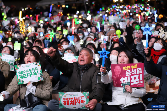 강추위 속에서 응원봉을 들고 크리스마스 선물로 "윤석열 체포"를 기대하는 시민들이 언제쯤 본연의 일상으로 돌아갈 수 있을까.