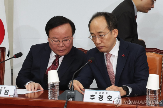 | ▲ 국민의힘 김재원 최고위원과 추경호 원내대표 (사진=연합뉴스) |
