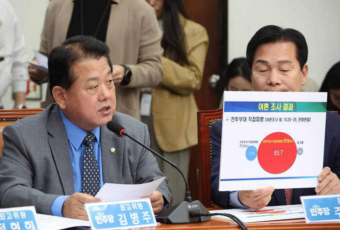 김 최고위원은 "정부는 모니터링단, 참관단이라는 이름으로 국회 동의를 피해 파병하는 꼼수를 쓰려고 하지만, 대북심리전을 전개하거나 북한 포로를 심문하는 역할도 할 것으로 보인다"며 "남북 대리전을 자청하는 위험천만한 행위"라고 지적했다.