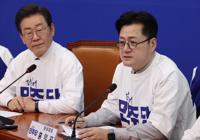 | ▲발언하는 이재명 대표와 최고위원들 (사진=연합뉴스) |