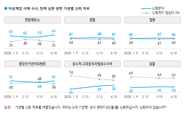 선관위 51%, 경찰 47%, 법원 46%, 공수처 32%