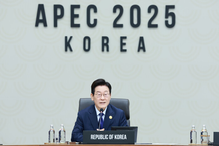 | ▲ 이재명 대통령이 31일 경주화백컨벤션센터(HICO)에서 열린 2025 아시아태평양경제협력체(APEC) 정상회의 제1세션에서 발언하고 있다. 2025.10.31 (사진=연합뉴스) |