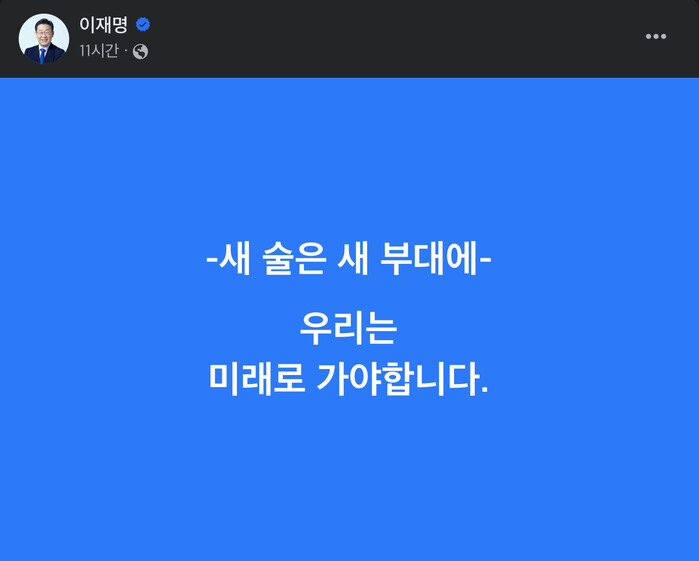 이런 가운데 페이스북을 통해 "'새 술은 새 부대에', 우리는 미래로 가야합니다"라는 글을 올리며 단호하게 공천 방향을 제시했다.