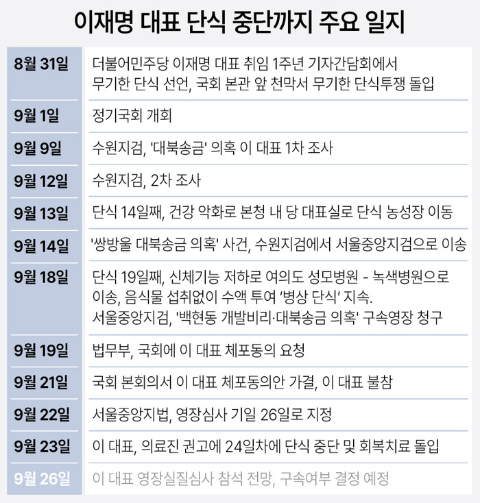 | ▲이재명 당대표 단식 주요일지 (그래픽=연합뉴스) |