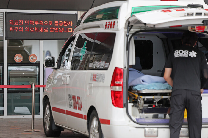 | ▲ 응급실 앞에 차 세운 앰뷸런스 (사진=연합뉴스) |