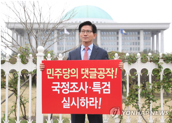 | ▲ 자유한국당 김문수 서울시장 후보가 15일 오후 국회 정문에서 더불어민주당의 댓글공작과 관련해 국정조사 및 특검을 촉구하는 1인 시위를 하고 있다. 2018.4.15 (사진=연합뉴스) |