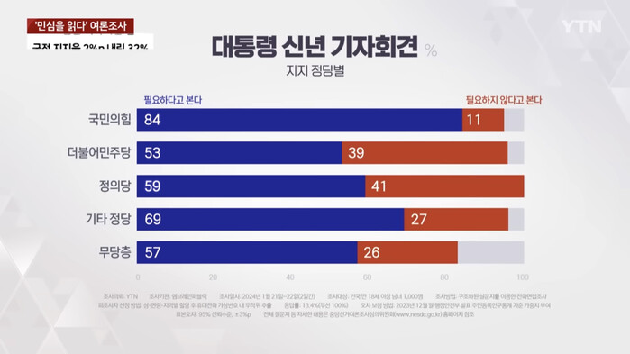 | ▲신년 기자회견 정당 지지별 YTN 엠브레인 여론조사 결과 (YTN 화면 캡쳐) |
