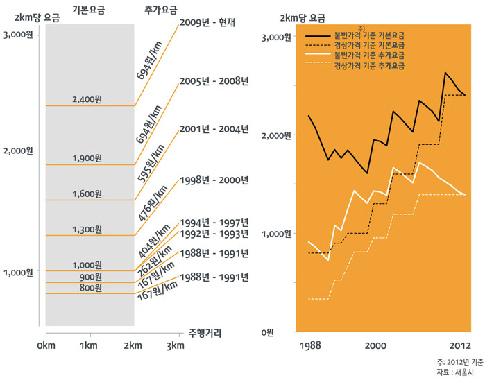 | ▲1998-2012 택시요금 변화 (이미지=서울시) |