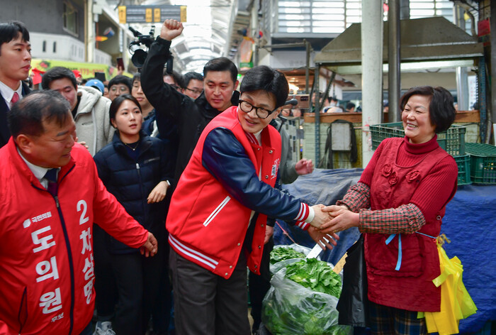 이어 방문한 평택 통복시장에서 한 위원장은 후보들을 한 명씩 소개하고 "우리가 평택의 삶을 개선하고 끝까지 책임지겠다. 우리를 선택해달라"며 지지를 호소했다.