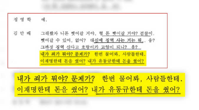 -김만배“한번물어봐 사람들한테,이재명한테 돈을 줬어? 李 이득없었다.