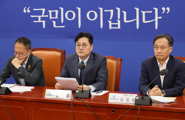그러면서 "한동훈 법무부 장관을 파면하고, 국무총리 해임 건의안 문제도 다수 의견을 존중하라"고 요구했다. 한 장관 탄핵소추안 발의 여부에 대해선 "일단 국감 이후에 우리가 판단할 생각"이라고 덧붙였다.