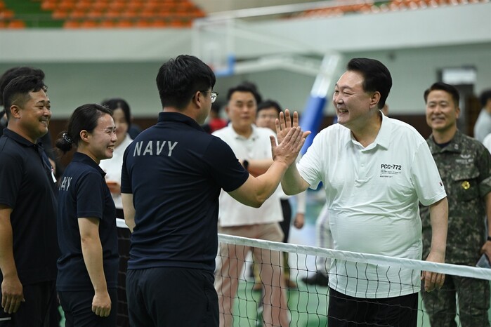 윤석열, 해군기지에서 장병들과 체육활동