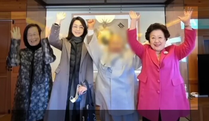 김건희와 이배용 전 국가교육위원회 위원장이 서울 은평구 진관사에서 합장하고 만세를 하는 사진이 공개됐다. 이 장면은 2022년 4월 12일 윤석열 당선 직후, 이 전 위원장이 국교위원장 임명 관련 청탁 문건을 전달했다는 의혹이 제기된 ‘진관사 회동’ 현장으로 추정된다.