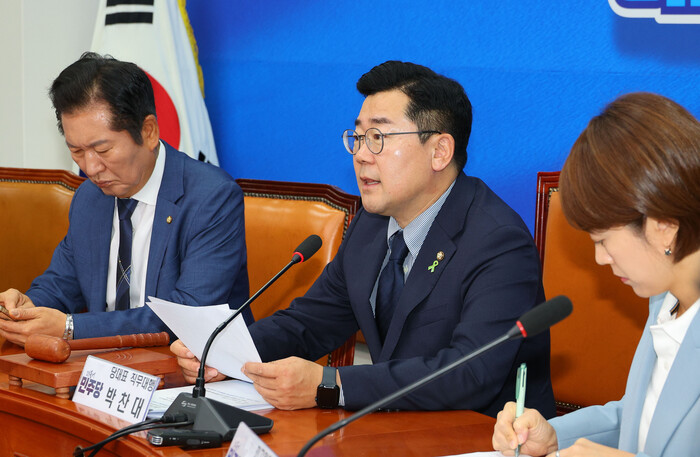 박 직무대행은 이날 국회에서 열린 정책조정회의에서 국민의힘 대표 후보들의 '폭로전'을 두고 "사실이라면 하나같이 묵과할 수 없는 심각한 범죄행위"라며 "당은 온 힘을 다해서 대통령 부부 범죄 의혹을 방탄하고 있고, 당 대표가 되겠다는 후보들은 하나같이 수사 대상이니 참 한심하고 볼썽사납다"고 지적했다.