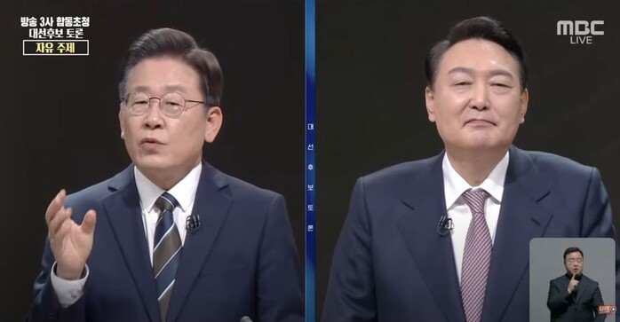 | ▲ 방송3사 합동초청 대선후보 토론 -자유주제 (MBC 유튜브캡쳐) |