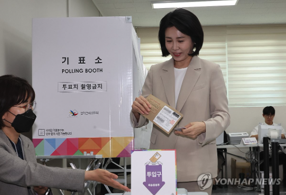 | ▲ 제21대 대통령선거 사전투표가 시작된 29일 더불어민주당 이재명 대선 후보의 배우자 김혜경 여사가 부산시 동구 초량2동 행정복지센터에 마련된 사전투표소에서 투표하고 있다. 2025.5.29 (사진=연합뉴스) |