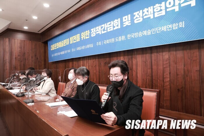 도종환 더불어민주당의원은 국회에서 대중문화예술분야 발전을 위한 "정책간담회 및 정책협약식" 을 진행했다. 그리고 한국방송예술인단체연합회 유동근 이사장님을 비롯해, 대한가수협회, 대한민국방송코미디언협회, 한국방송실연자권리협회, 한국방송연기자노동조합, 한국방송연기자협회, 한국성우협회 등 함께 해주신 모든 분들께 깊이 감사드린다고 하였다.