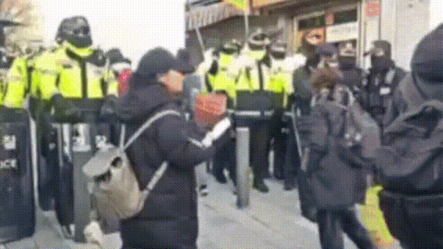 영상을 보면 길을 지나가던 한 여성 행인 B씨는 A씨의 손팻말을 빼앗으려 시도한다. 뜻대로 되지 않자 급기야 그대로 A씨의 뺨을 내려친다. B씨의 갑작스러운 행동에 주변에 있던 사람은 "어어 때렸어, 때렸어"라고 놀라 소리친다. B씨의 폭행은 경찰들이 지켜보는 가운데 이뤄졌다.