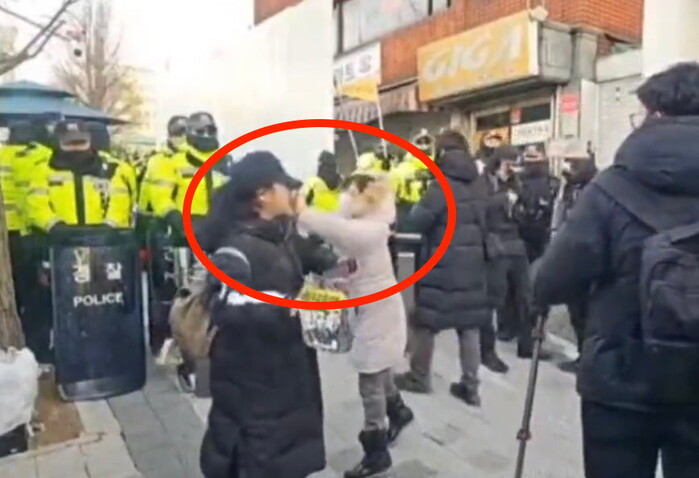 윤석열 한남동 관저 인근에서 열린 탄핵 촉구 집회에 참여한 여성이 일면식도 없는 행인에게 뺨을 맞는 사건이 발생했다. 피해 여성은 가해자를 고소했다고 알렸다.
