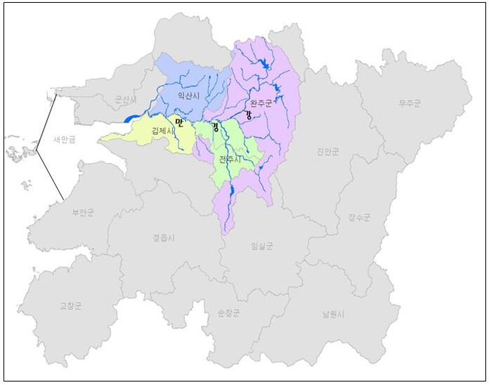 만경강은 완주군 동상면 원정산에서 발원하여 소양천, 전주천과 합류한 뒤 만경평야를 가로질러 서해로 흐르는 국가하천으로 유역면적이 1,569㎢에 이른다. 그간 만경강은 지속적인 수질개선 노력에도 불구하고 유량 부족 등의 이유로 개선 효과가 뚜렷하게 나타나지 않았다.
