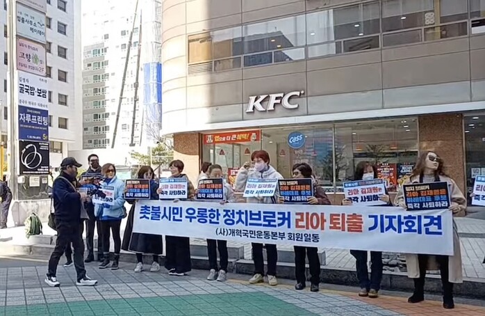 사단법인 개혁국민운동본부 회원들이 “조국혁신당 비례대표로 출마한 가수 리아 (본명 김재원)는 국민의 대표로 출마할 자격이 없다”면서 “정치 브로커 짓을 하며 정치권에 참여하고자 했던 리아의 민낯을 폭로한다”는 기자회견을 진행했다.