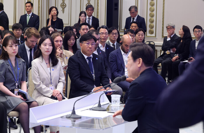 | ▲ 이재명 대통령이 3일 청와대 영빈관에서 열린 '대통령의 30일, 언론이 묻고 국민에게 답하다' 기자회견에서 외신 기자의 질문을 듣고 있다. 2025.7.3 (사진=연합뉴스) |
