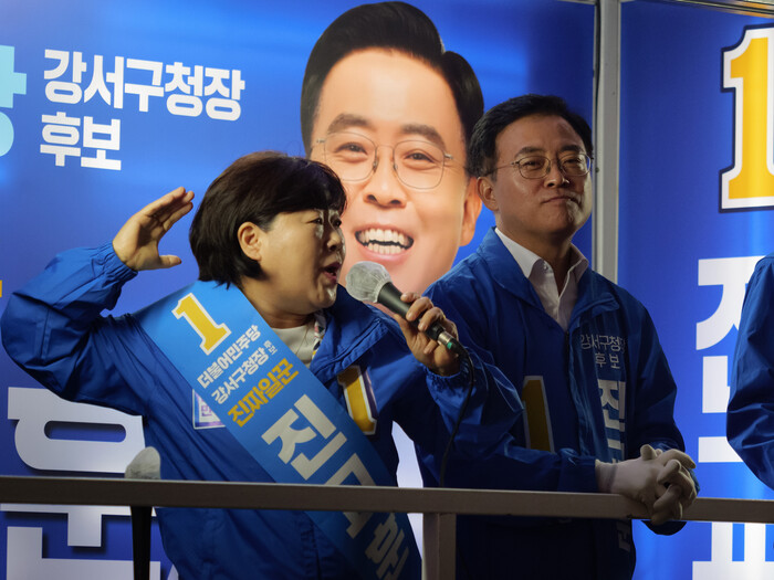 | ▲무대에 오른 서영교 장경태 최고위원 (사진=시사타파뉴스 이외솔) |
