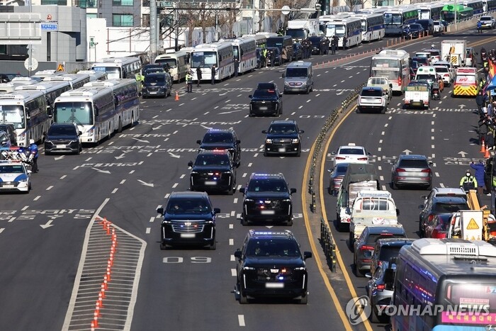 | ▲ 15일 한남동에서 공수처로 이동하는 차량 (사진=연합뉴스) |