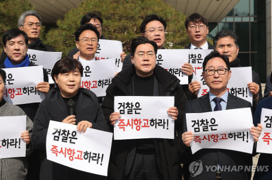 민주당 강유정 대변인은 8일 오전 국회에서 비상의원총회가 끝난 뒤 기자들에게 "법사위원들과 원내 부대표단 등 20~30명 정도 규모가 되는 의원들이 대검을 항의방문해 즉시 항고, 즉시 파면이라는 주제로 기자회견하게 될 것"이라고 밝혔다.