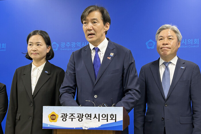 | ▲조국 대표 광주 기자회견 모습 (사진=연합뉴스) |