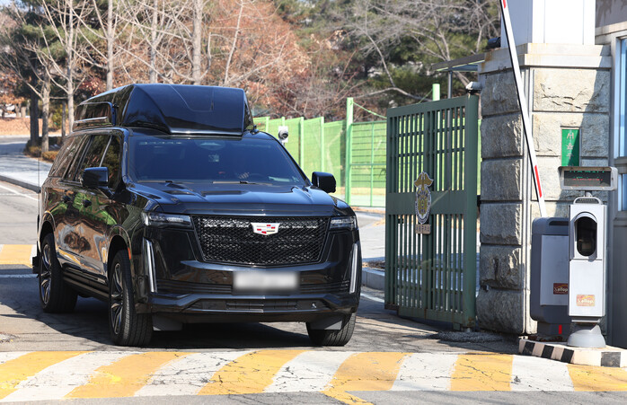 | ▲ 18일 서부지법 들어서는 윤석열 호송차량 (사진=연합뉴스) |