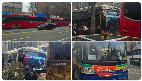 | ▲ 15일 광주 금남로 집회에 동원된 버스 (출처=X) |