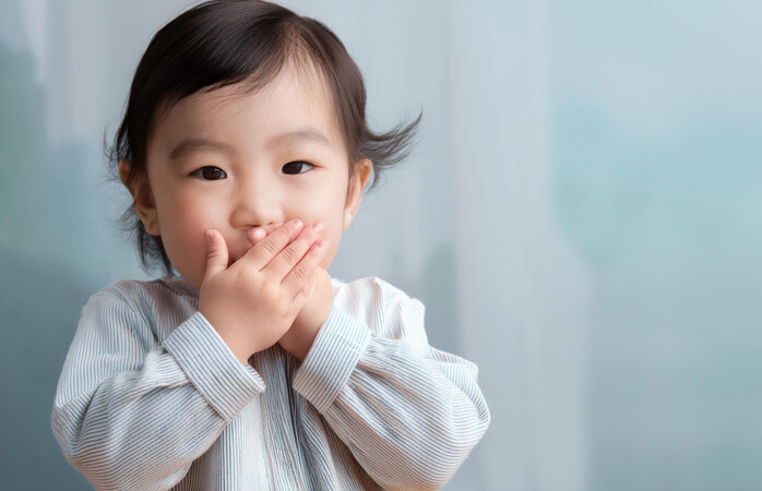 | ▲두 손으로 입 막은 아기 모습 (AI 사진합성=시사타파뉴스) |