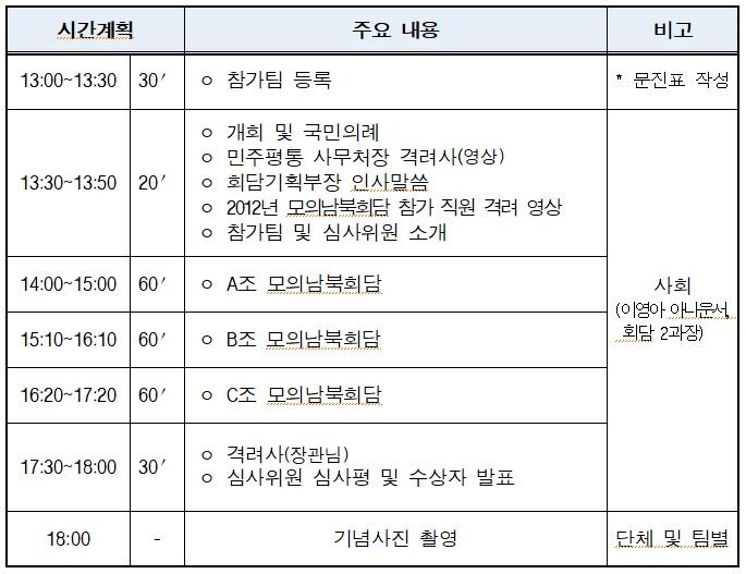o (일시 및 장소) 11. 13.(토) 13:30~18:00, 남북회담본부 회담장 3층 대회의실
