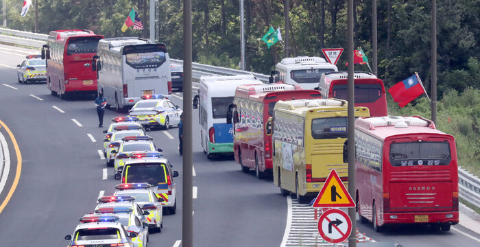 | ▲숙소 이동중인 잼버리 대원 탑승 버스 (사진=연합뉴스) |