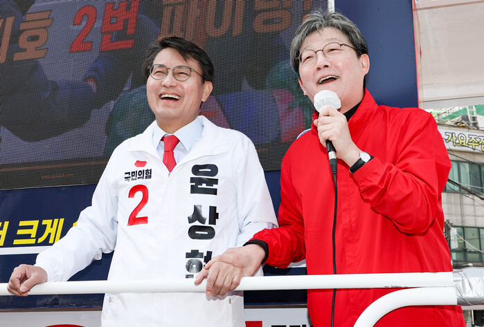 | ▲윤상현 지원유세 자선 유승민 전 의원 (사진=연합뉴스) |