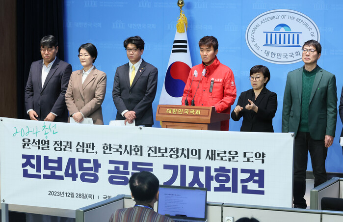 정의당, 진보당, 녹색당, 노동당 등 4개 진보 계열 정당은 "윤석열 정권의 거대한 퇴행에 맞서 22대 총선에서 공동 대응을 모색하기로 의견을 모았다"고 말했다.