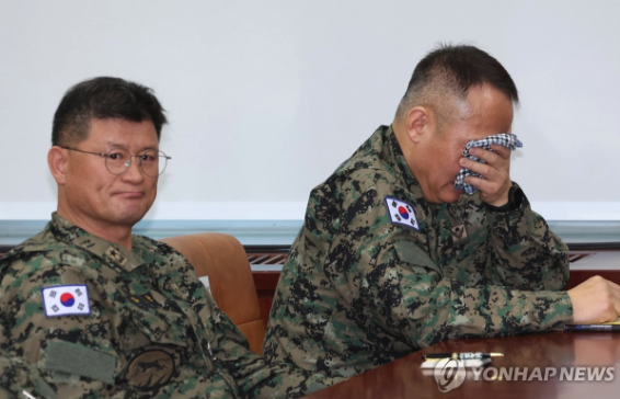 지난 3일 비상계엄 사태 당시 국회에 투입된 제1공수특전여단 이상현(오른쪽) 여단장이 10일 오전 서울 여의도 국회에서 열린 국방위원회의 긴급 현안질의에 출석해 눈물을 흘리고 있다.