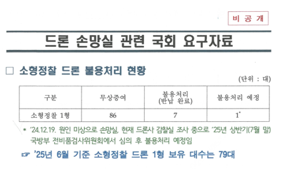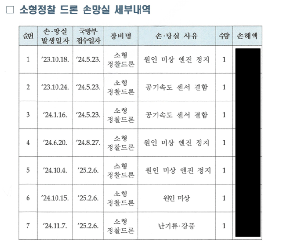 | ▲ 소형정찰 드론 손망실 세부내역 (제공=부승찬 의원실) |