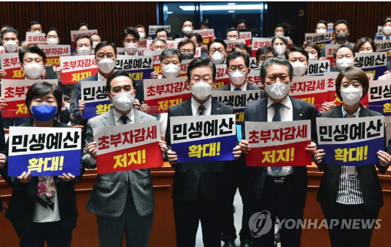 | ▲ 초부자감세 저지 외치는 민주당 2022.9.22 (사진=연합뉴스) |