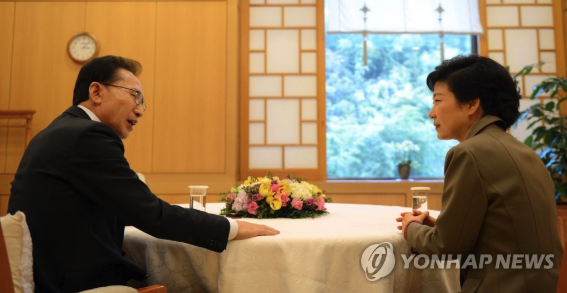 | ▲ 사진은 박근혜 대통령 당선인 시절 청와대에서 이명박 당시 대통령과 대화하는 모습 2017.3.10 (사진=연합뉴스) |