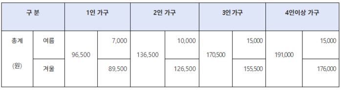 가구원 수가 많을수록 에너지 소비량이 증가하므로, 올해부터 가구원 수 구분을 3인 이상에서 3인과 4인 이상으로 조정하고, 특히, 국민기초생활보장법상 수급권자인 외국인이 세대별 주민등록표에 표기된 경우 에너지바우처 세대원에 포함하여 지원할 계획이다.