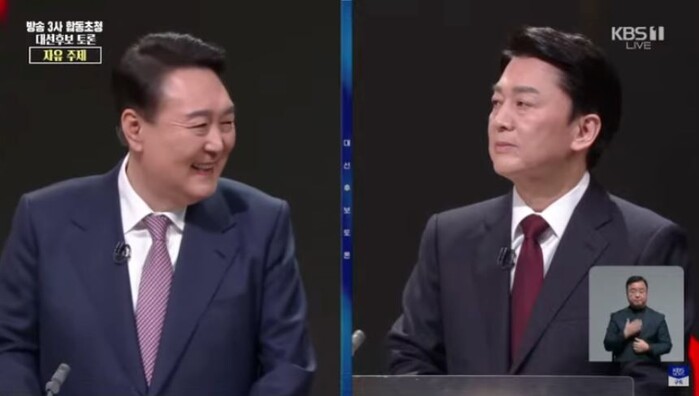 | ▲ 방송3사 합동 대선후보 4자토론 (MBC 유튜뷰 캡쳐), (KBS뉴스 캡쳐) |